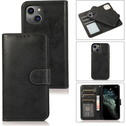 Mobigear Wallet Housse iPhone 13 Mini Etui avec Coque Détachable Porte-Monnaie - Noir