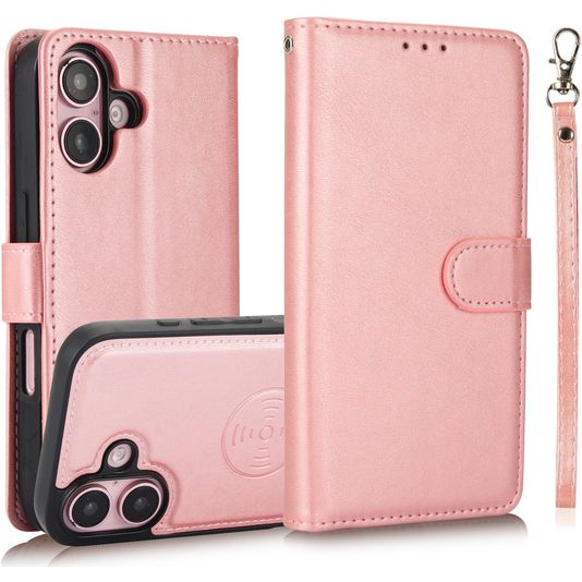 Mobigear Wallet Housse iPhone 16 Etui avec Coque Détachable Porte-Monnaie - Rose doré