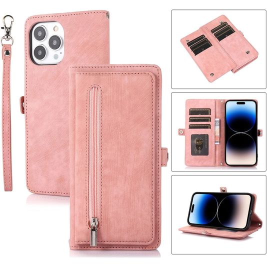 Mobigear Zipper Housse iPhone 14 Pro Etui Porte-Monnaie - Rose doré
