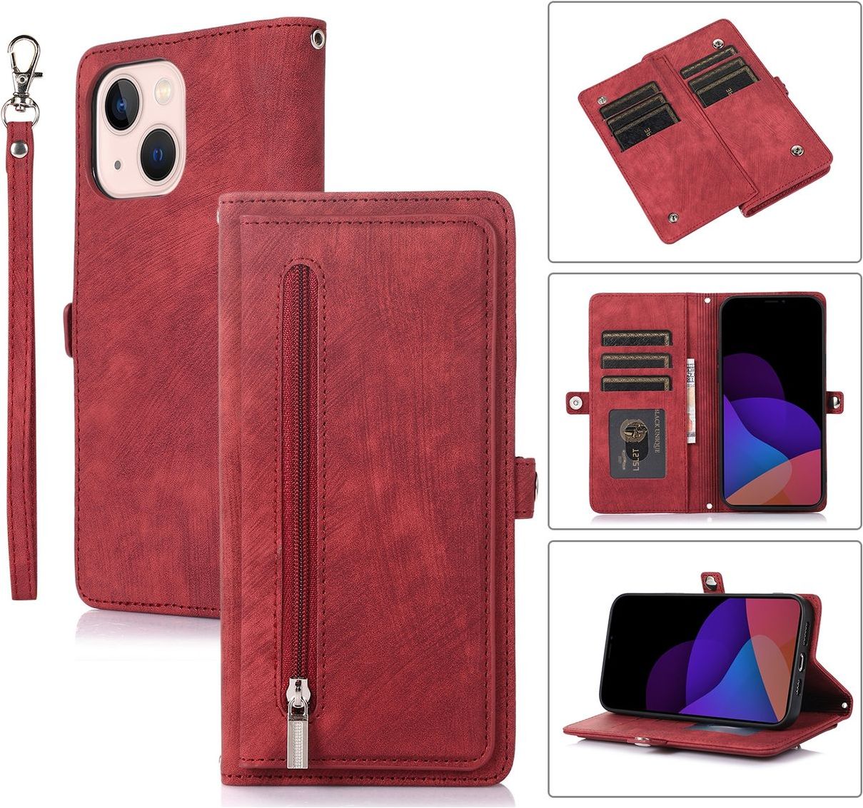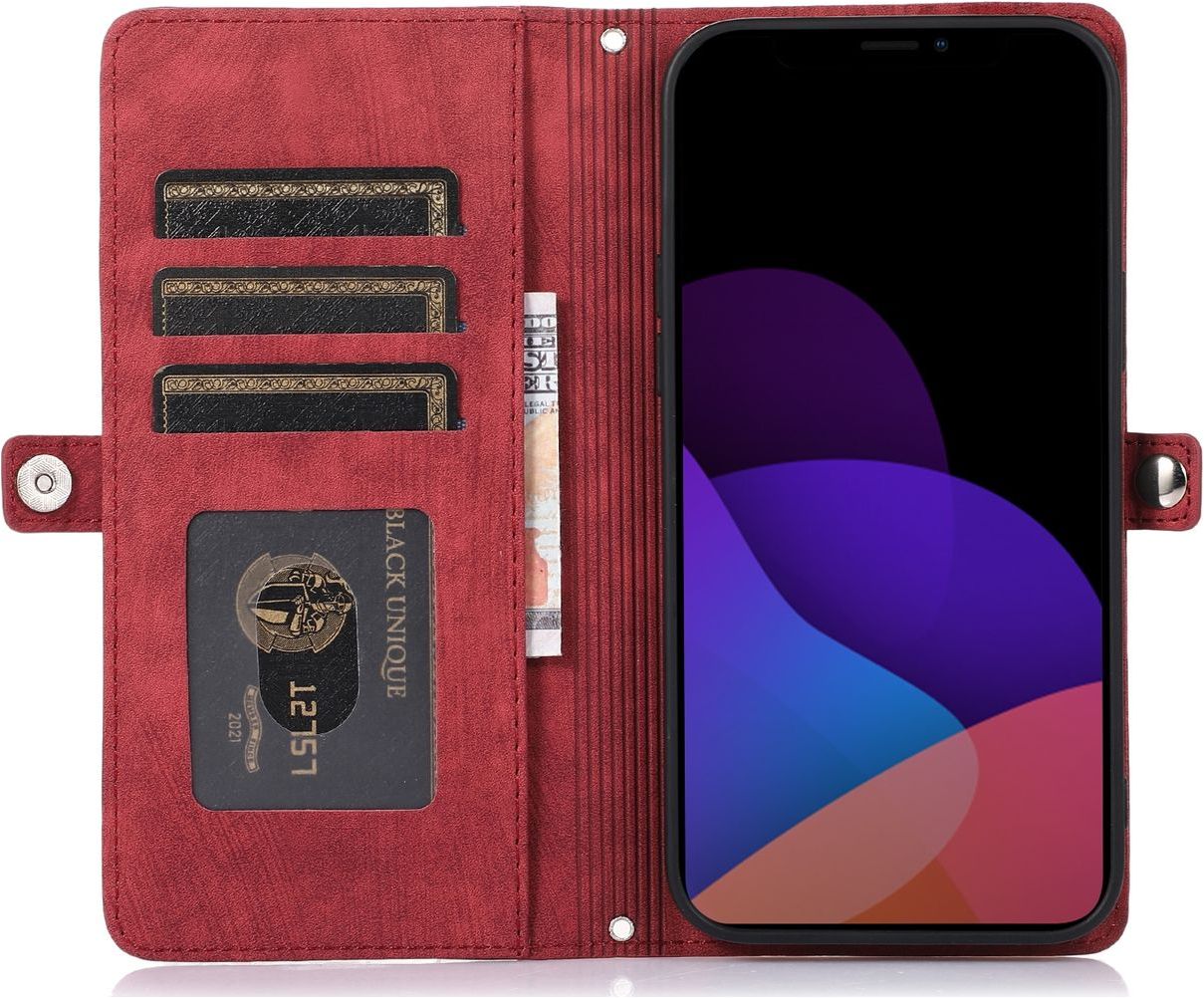 Mobigear Zipper Housse iPhone 14 Etui Porte-Monnaie - Rouge