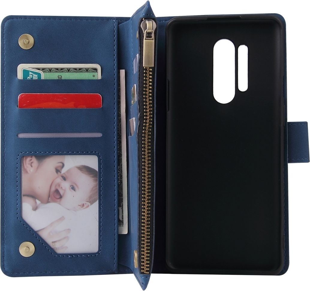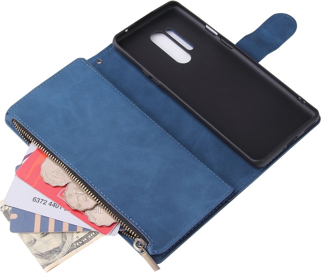 Mobigear Zipper Housse OnePlus 8 Pro Etui Porte-Monnaie - Bleu