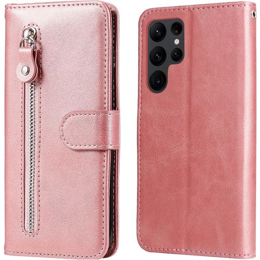 Mobigear Zipper Housse Samsung Galaxy S23 Ultra Etui Porte-Monnaie - Rose doré