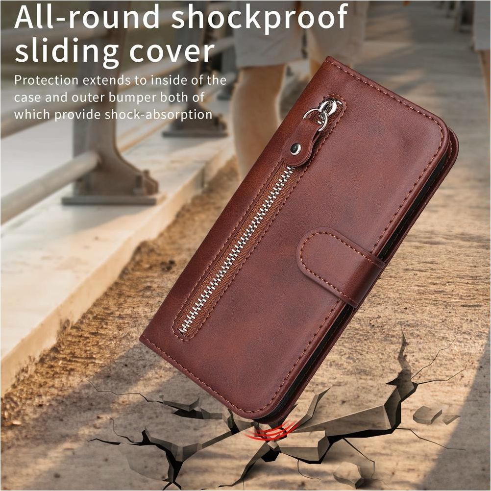 Mobigear Zipper Housse iPhone 17 Etui Porte-Monnaie - Marron