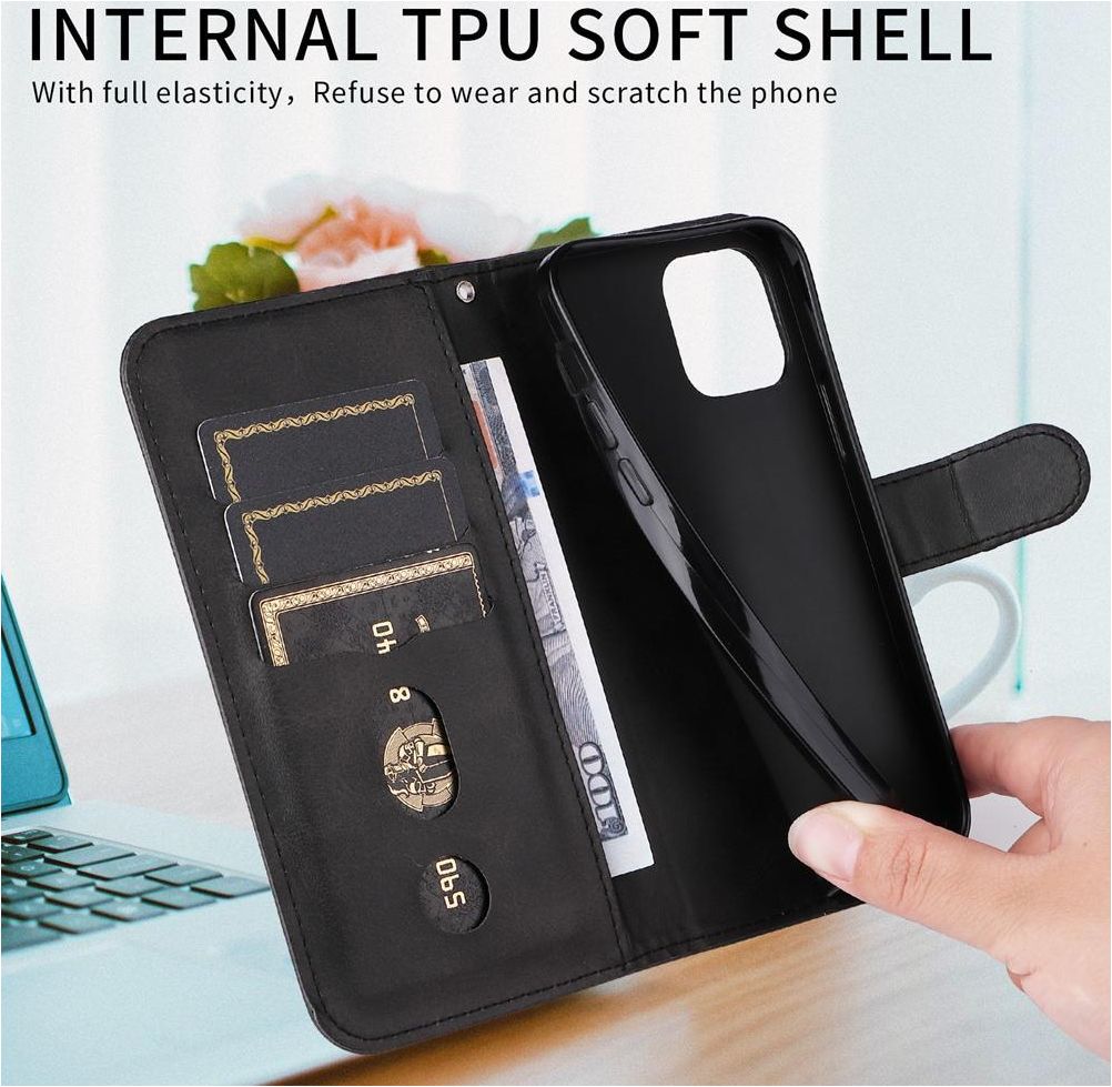 Cette coque pratique ne te permet pas seulement de protéger ton téléphone. Grâce à sa conception astucieuse, tu peux désormais sortir sans portefeuille en vrac. Il y a une poche spéciale pour ranger tes pièces de monnaie, et un compartiment où tu peux garder tes billets.