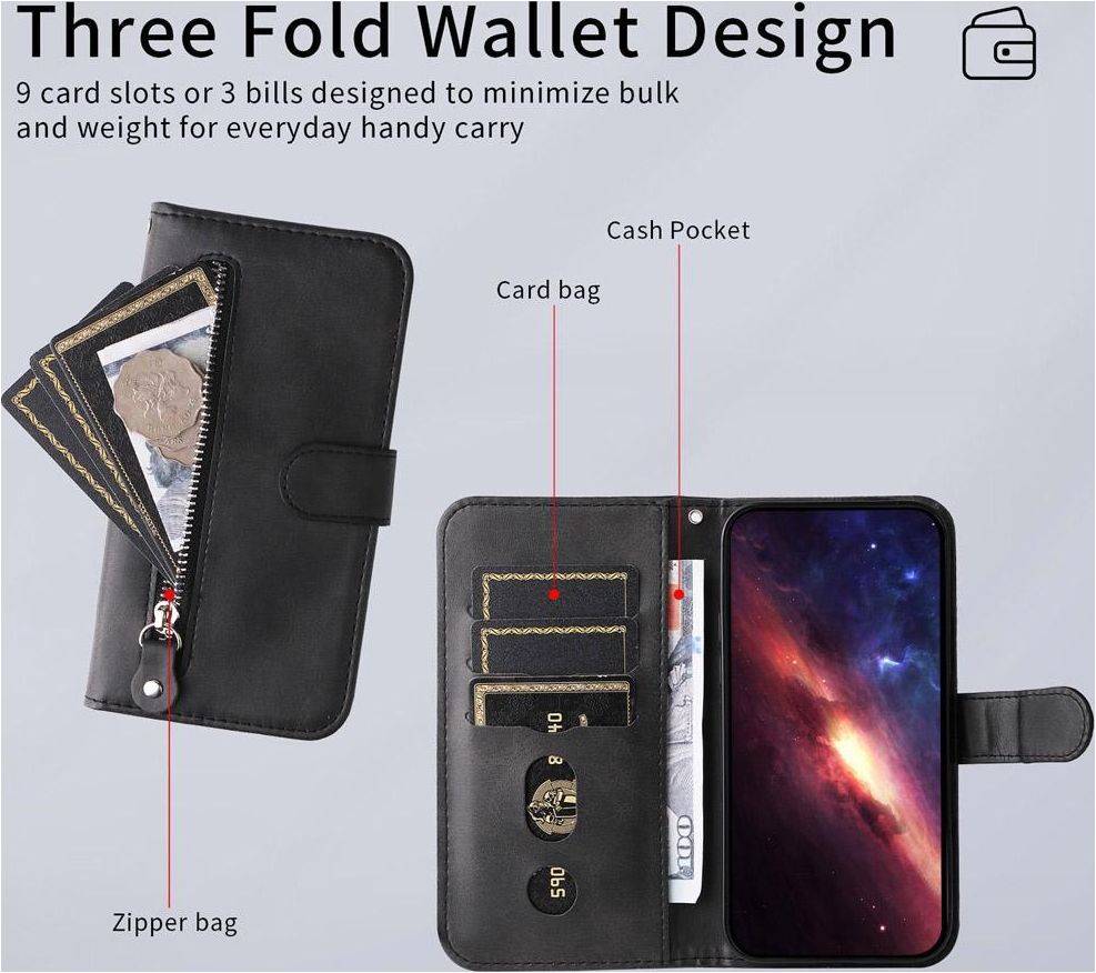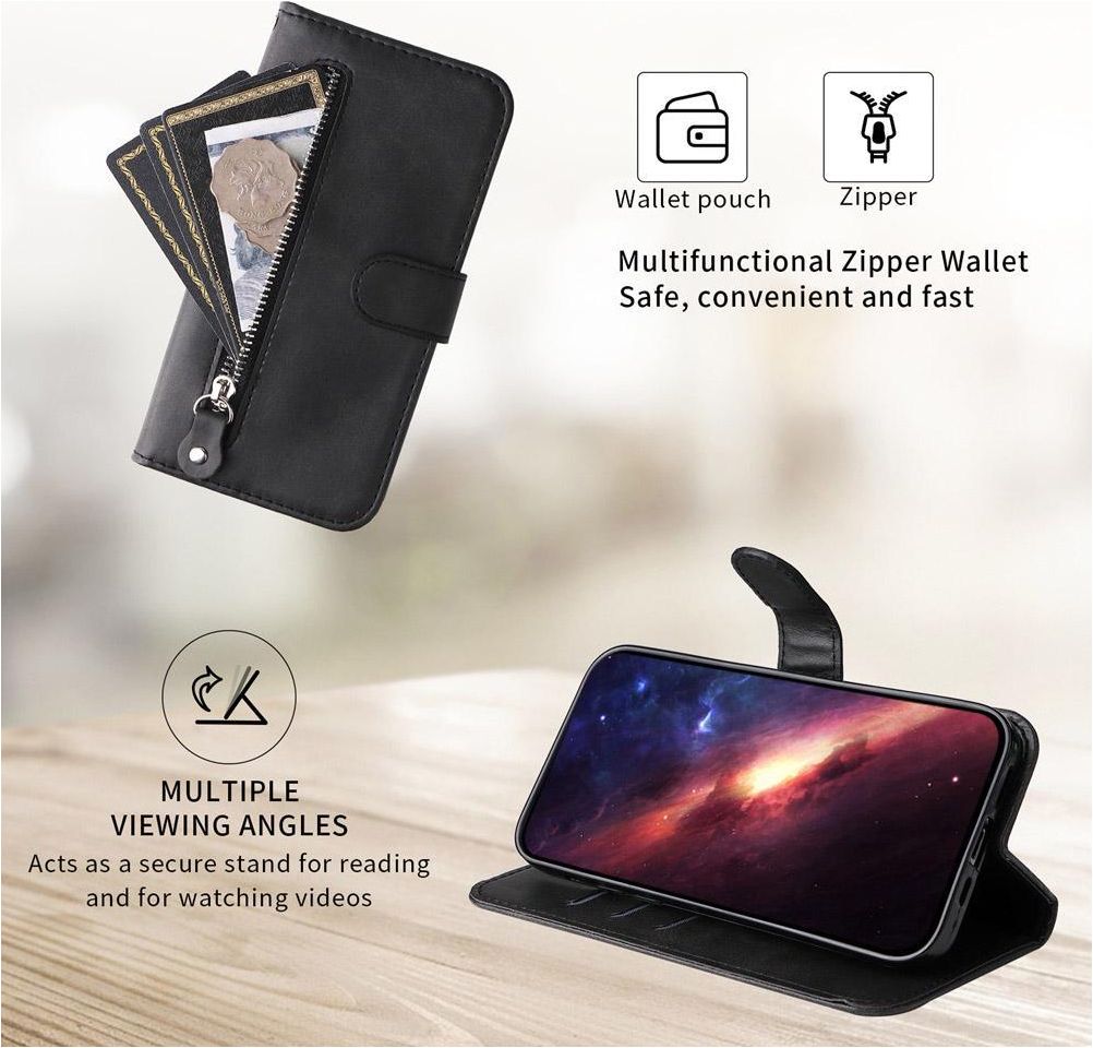 Mobigear Zipper Housse iPhone 17 Etui Porte-Monnaie - Noir