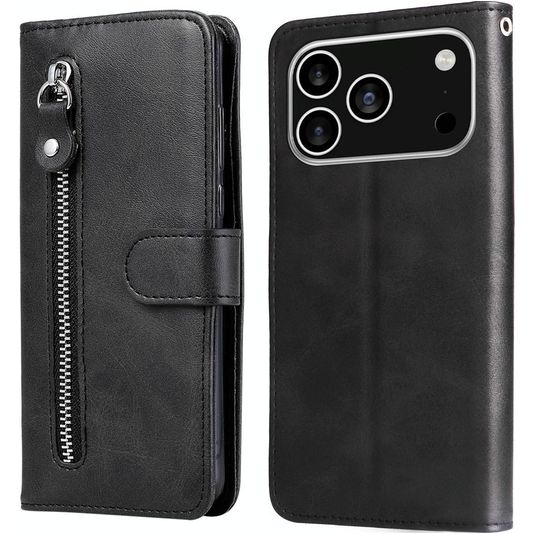 Mobigear Zipper Housse iPhone 17 Pro Etui Porte-Monnaie - Noir