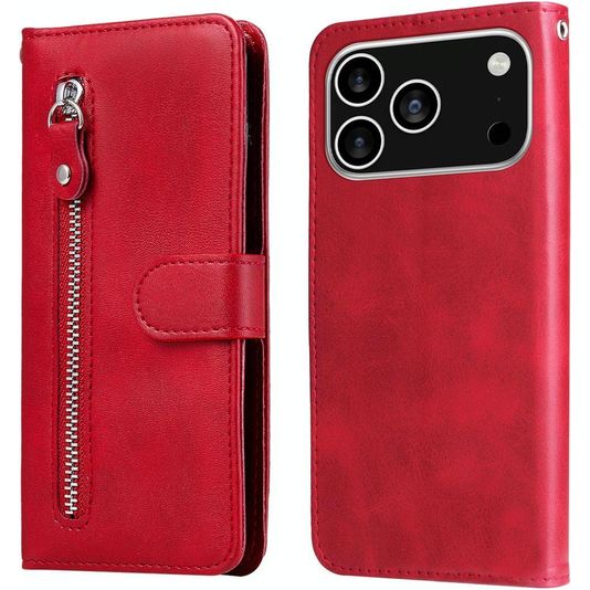 Mobigear Zipper Housse iPhone 17 Pro Etui Porte-Monnaie - Rouge