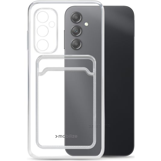 Mobilize Gelly Card Coque Transparente Samsung Galaxy A14 Coque arrière en TPU Souple avec Porte-Cartes - Transparent