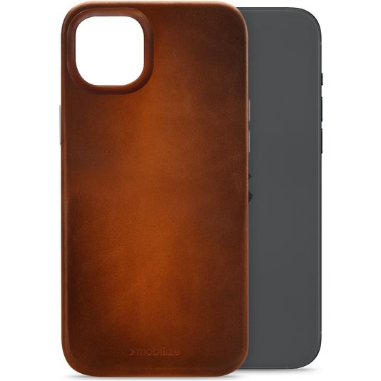 Mobilize Premium Coque iPhone 15 Plus MagSafe Coque arrière en Cuir Véritable - Burned Cognac