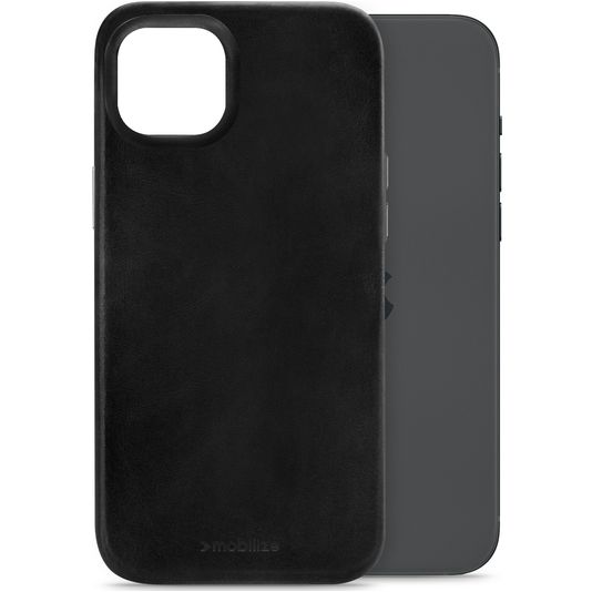 Mobilize Premium Coque iPhone 15 Plus MagSafe Coque arrière en Cuir Véritable - Noir