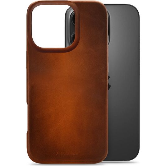 Mobilize Premium Coque iPhone 16 Pro MagSafe Coque arrière en Cuir Véritable - Burned Cognac