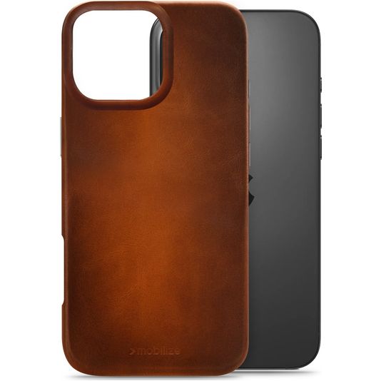 Mobilize Premium Coque iPhone 16 Pro Max MagSafe Coque arrière en Cuir Véritable - Burned Cognac