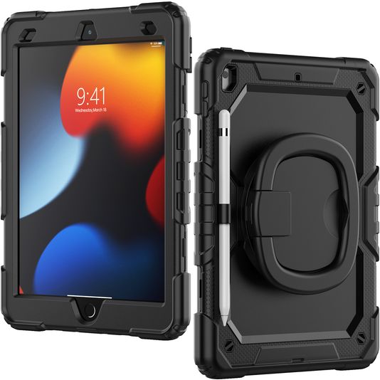 Mobilize Rotating Defender Coque iPad 7 (2019) Coque arrière en Plastique rigide,Silicone + Bandoulière + Support Amovible - Noir
