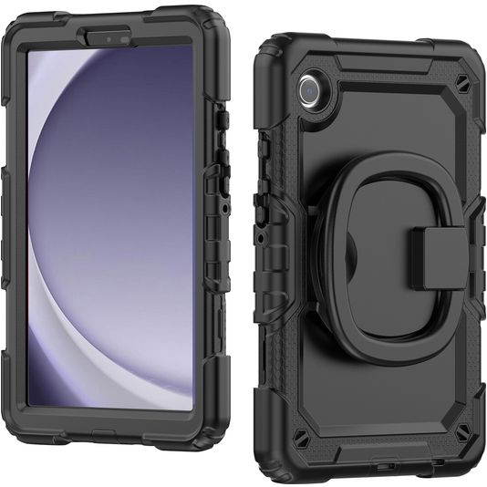 Mobilize Rotating Defender Coque Samsung Galaxy Tab A9 (2023) Coque arrière en Plastique rigide,Silicone + Bandoulière + Support Amovible - Noir