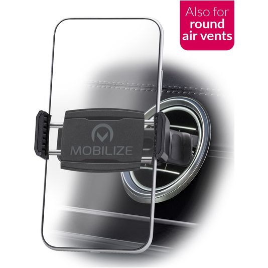 Utilise ton téléphone en toute sécurité dans la voiture grâce à ce support de voiture Mobilize Round Vent. Avec ce support de téléphone pour voiture, tu as une bonne visibilité de l'écran et tu peux utiliser la navigation ou d'autres applications en toute sécurité.