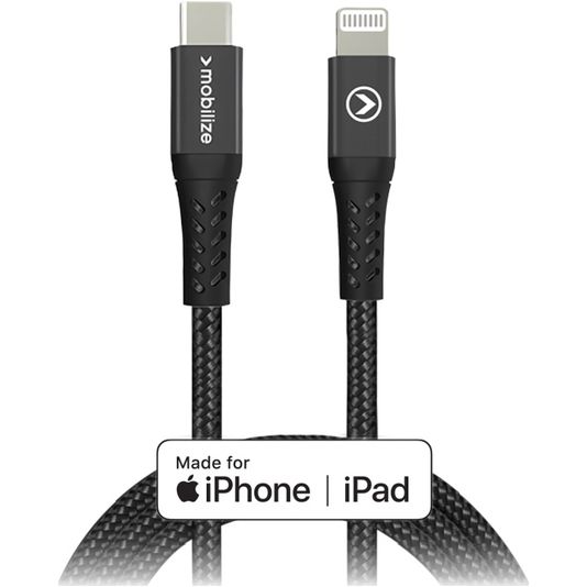 Mobilize Strong Nylon - Câble USB-C vers Apple Lightning MFI 1 mètre - Noir