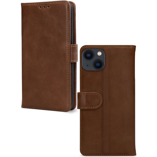 Mobilize Wallet Housse iPhone 13 Mini Etui en Cuir Véritable Porte-Monnaie - Marron