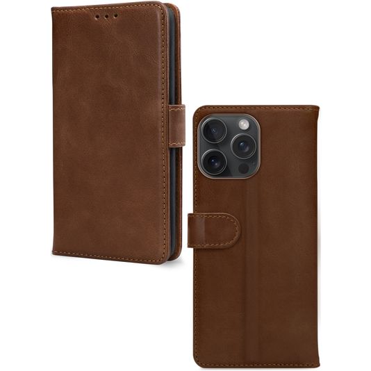 Mobilize Wallet Housse iPhone 15 Pro Max Etui en Cuir Véritable Porte-Monnaie - Marron