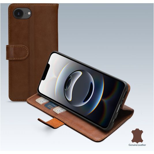 Mobilize Wallet Housse iPhone 16e Etui en Cuir Véritable Porte-Monnaie - Marron