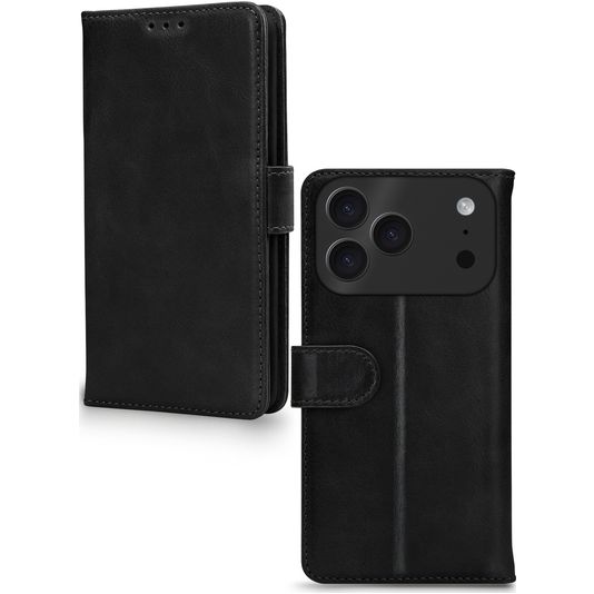 Mobilize Wallet Housse iPhone 17 Pro Max Etui en Cuir Véritable Porte-Monnaie - Noir