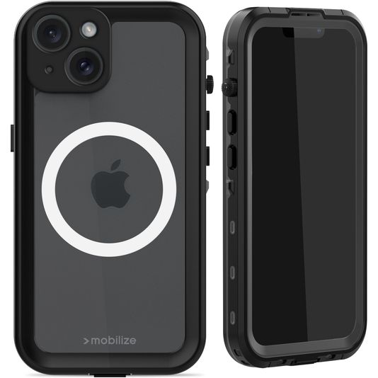 Mobilize Waterproof Coque iPhone 15 MagSafe Coque arrière Imperméable Rigide - Noir