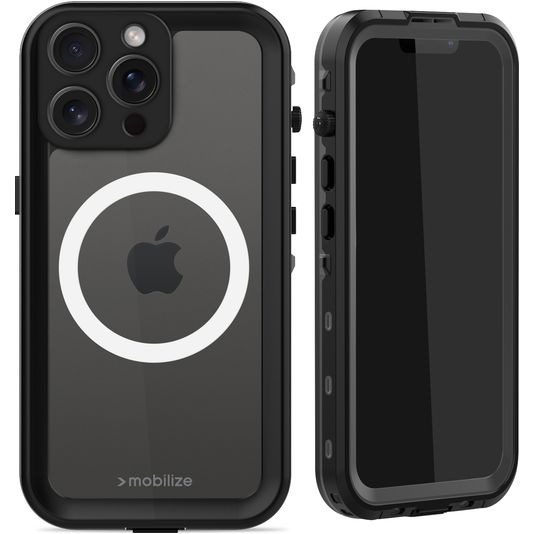 Mobilize Waterproof Coque iPhone 15 Pro Max MagSafe Coque arrière Imperméable Rigide - Noir
