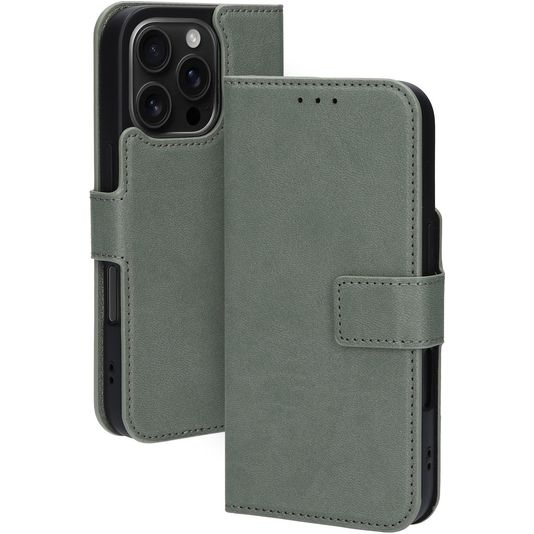 Mobiparts Classic Wallet MagSafe Housse iPhone 16 Pro MagSafe Etui Porte-Monnaie - Stone Green