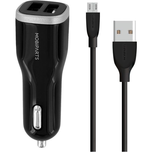 Mobiparts - Double USB Chargeur voiture Micro USB 1 mètre 24W 4.8A - Noir