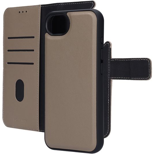 Mobiparts Housse iPhone 16e Etui avec Coque Détachable en Cuir Véritable Porte-Monnaie - Taupe