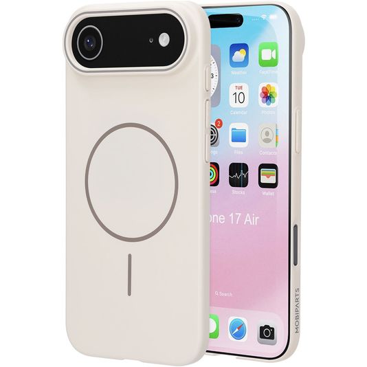 Profite de MagSafe avec ton Apple iPhone Air grâce à l'étui dorsal Mobiparts Slim Line Apple iPhone Air avec aimant MagSafe. La coque MagSafe est fabriquée en plastique rigide robuste et se présente dans la couleur off white. Tu peux fixer tous les accessoires MagSafe tels qu'un chargeur ou un support avec cette coque MagSafe Apple iPhone Air.