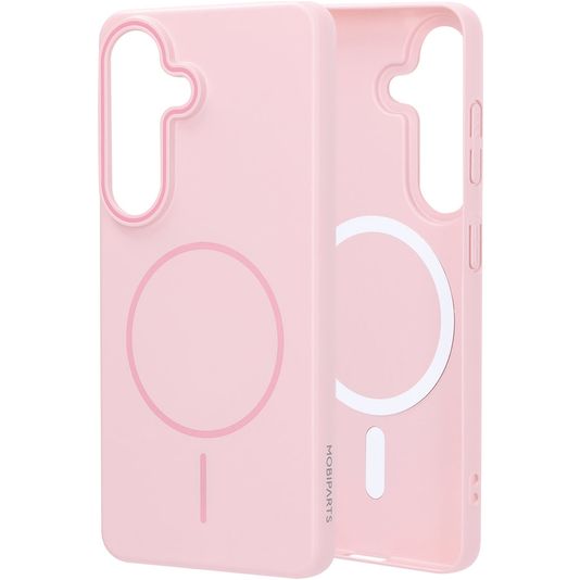 Profite de MagSafe avec ton Samsung Galaxy S26 grâce à l'étui dorsal Mobiparts Slim Line Samsung Galaxy S26 avec aimant MagSafe. La coque MagSafe est fabriquée en plastique rigide robuste et se présente dans la couleur blush pink. Tu peux fixer tous les accessoires MagSafe tels qu'un chargeur ou un support avec cette coque MagSafe Samsung Galaxy S26.