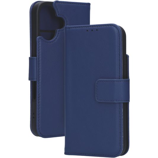 Mobiparts Wallet Housse iPhone 16 MagSafe Etui en Cuir Véritable Porte-Monnaie - Bleu