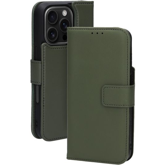 Mobiparts Housse iPhone 16 Pro MagSafe Etui avec Coque Détachable en Cuir Véritable Porte-Monnaie - Vert