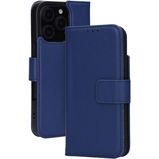 Mobiparts Wallet Housse iPhone 16 Pro MagSafe Etui en Cuir Véritable Porte-Monnaie - Bleu