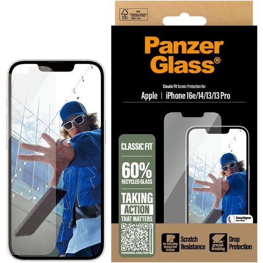 Choisis la meilleure protection et la meilleure qualité avec cette protection d'écran en verre trempé PanzerGlass Classic Fit Apple iPhone 13. Empêche les rayures et les fissures sur ton écran tout en conservant des commandes complètes et une facilité d'utilisation optimale. Cette protection d'écran en verre trempé Apple iPhone 13 de haute qualité est fabriquée en verre trempé 9H résistant. Le verre trempé est également doté de revêtements anti-graisse et anti-salissure. Les formes de la protection d'écran en verre s'adaptent parfaitement au Apple iPhone 13. Le protection d'écran est facile à installer avec les outils fournis.
