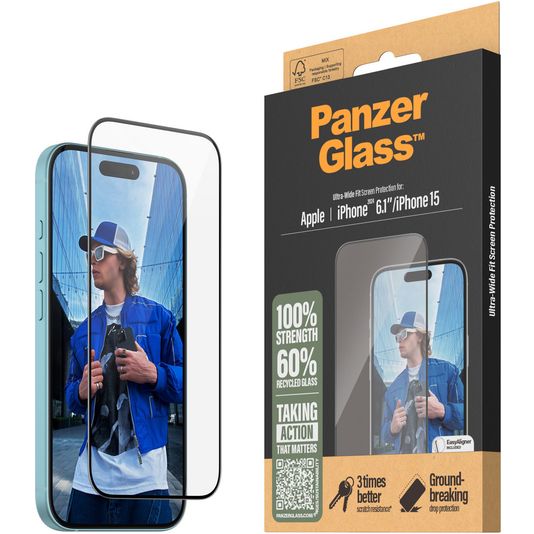 PanzerGlass Ultra-Wide Fit iPhone 16 Verre trempé Protection d'écran - Compatible Coque