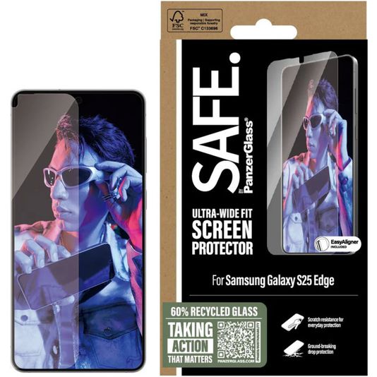 SAFE by PanzerGlass Ultra-Wide-Fit Samsung Galaxy S25 Edge Verre trempé Protection d'écran - Compatible Coque