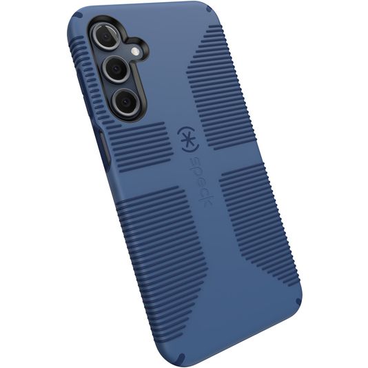 Protège ton Samsung Galaxy A16 des dommages avec la coque arrière Speck Impact Hero Grip fabriquée en plastique rigide robuste. La coque est de couleur bleu et coque l'arrière et le côté de ton téléphone. L'avant reste libre avec cette coque arrière, ton écran est donc toujours directement accessible.