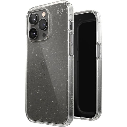 Donne à ton Apple iPhone 14 Pro une protection robuste avec la coque Speck Presidio Perfect Clear Glitter coque arrière. Cette coque en plastique est un bouclier robuste contre les rayures, les bosses et autres dommages liés à l'utilisation quotidienne.