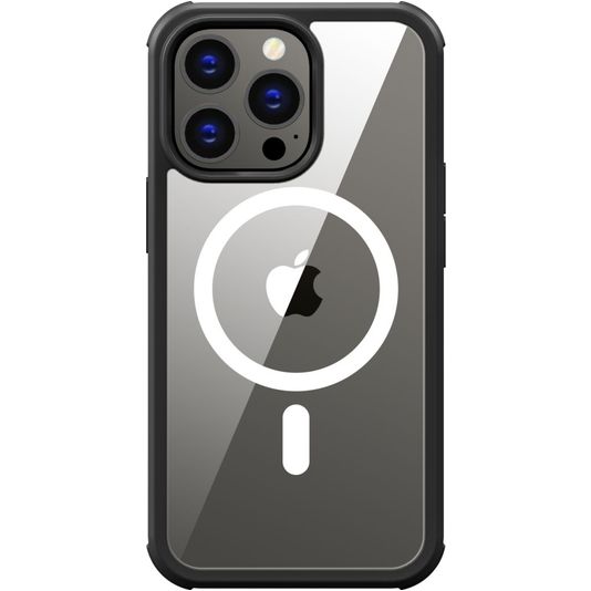 Valenta Full Cover Coque iPhone 14 Plus MagSafe Coque arrière en Verre trempé Anti-Chocs - Transparent / Noir
