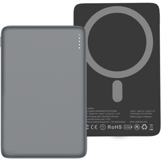 Valenta Ultra Slim - Batterie externe Simple USB-C 5.000 mAh 15W - Compatible MagSafe - Gris